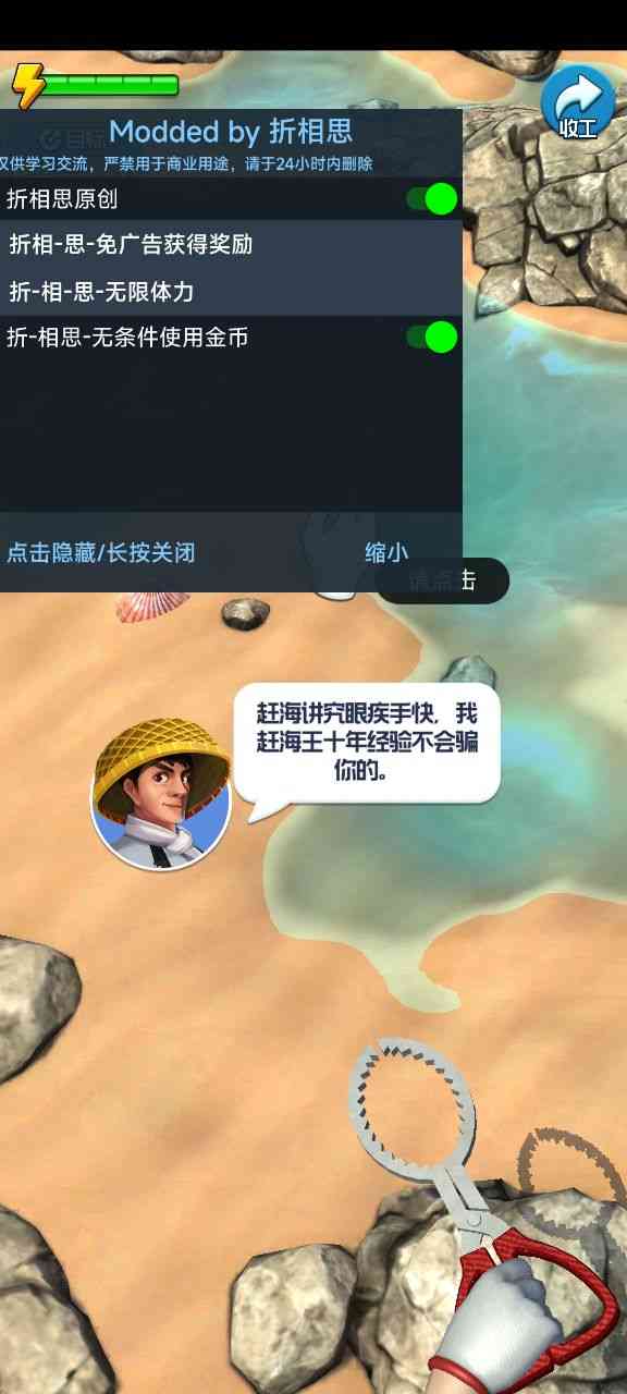 《赶海王》是一款融合了探索、收集等元素的休闲游戏。3D写实的美术风格和丰富的海货种类,沉浸式的视角和音效,让你体会最真实的赶海,走捷径。!
