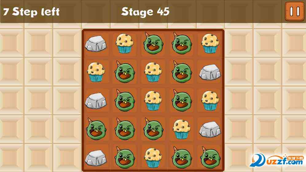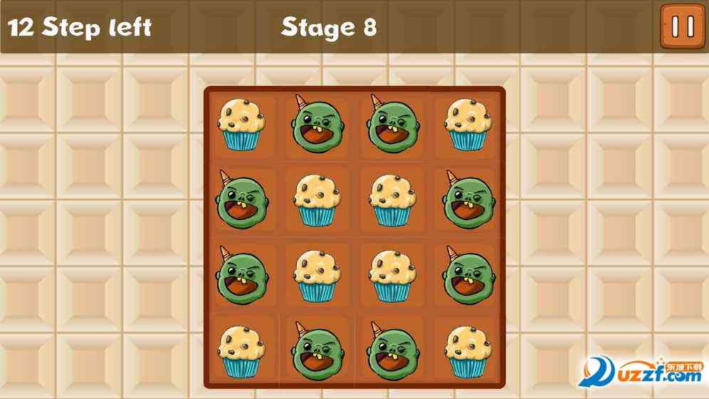在方格之中会有僵尸、 松饼蛋糕还有一些其他的阻碍物,通过点击某种图标会将它上下左右的方格物变成其他的东西,目标就是将所有图标变成松饼或僵尸。