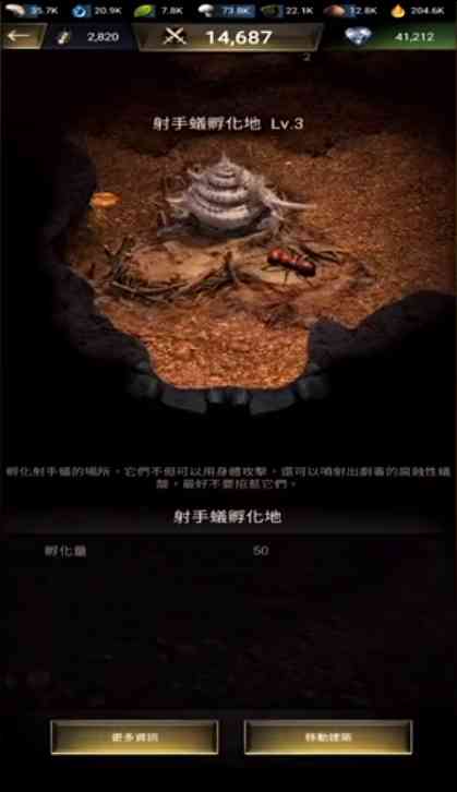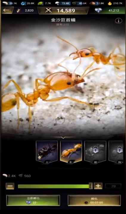 获得更高品质的特化蚁, 提升特化蚁等级,解锁更多特化蚁技能和提升技能等级,一边可以提高特化蚁携带兵蚁的数量都可以提升战力呦,你看啊...。