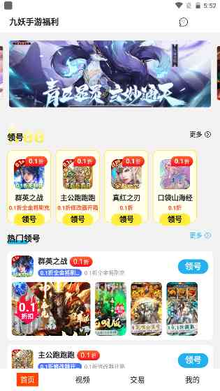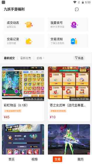 九妖手游福利是一款集游戏资源、交易、资讯于一体的优质平台。无论你是想要寻找福利游戏,还是想要在游戏中赚点零花钱,这里都能满足你的需求。赶快下载体验吧!