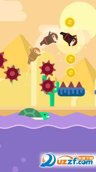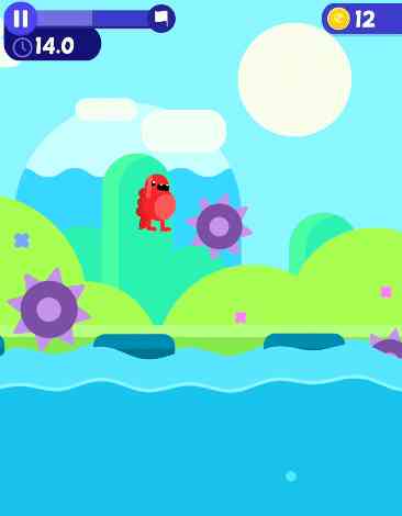 因为关卡的层层推进, 闯关的难度会逐步加大,除了会玩失踪的平台之外吃人鱼、不断来回移动的齿轮,以及旋转的尖刺等,无一不虐得你遍体鳞伤。不服的话,你就马上来挑战吧。再说一个,在闯关的过程中,你还可以捡到一些金币,然后你可以利用这些金币来解锁自己喜欢的角色。不过它们除了造型不同之外并没有什么技能加成,戳到痛处了。。