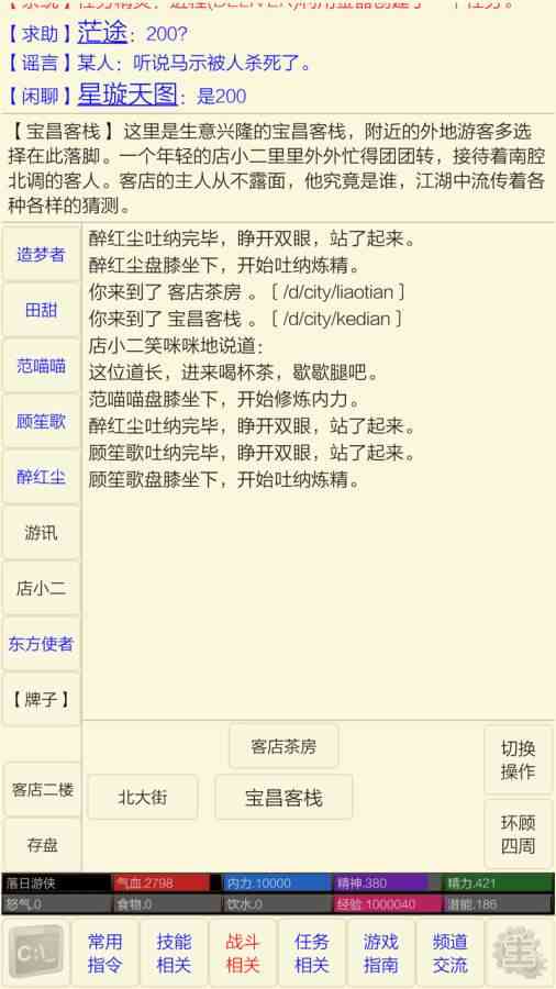2、智能输入:指间MUD提供智能输入功能,让玩家在游戏中更加便捷地输入指令。