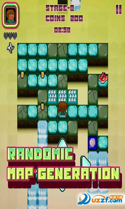 - 随机地图生成, 每一个新的关卡将是独一无二的,陷阱、敌人和掉落物品都将随机出现在新关卡里面;