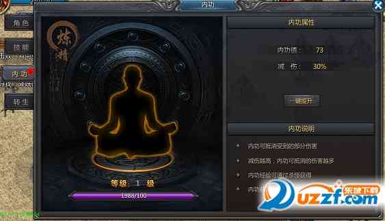内功类似于一个护盾, 可以抵消一部分玩家所受到的伤害,一边,内力值具有上限,随时间自行回复。减伤越高,内力值可以抵消的伤害越多。内力值可以通过打怪获得,参加活动也可以获得内功经验卷,使用后可获得大量内功经验,开搞。。
