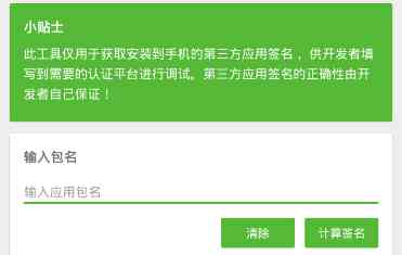 总结一下。 签名获取工具仅用于获取安装到手机的第三方应用签名,供开发者填写到需要的认证平台进行调试。在使用过程中,请确保第三方应用签名的正确性由开发者自己保证!