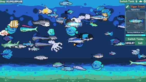 轻松水族馆是一款非常减压的放置类游戏这个。购买各类可爱的小鱼苗,因为现实时间的流逝把它们养大, 翻旧账。 然后卖掉赚钱!从起始的水族箱,慢慢一步步用各种奇异、稀有的鱼来完成你梦寐以求水族馆的搭建。