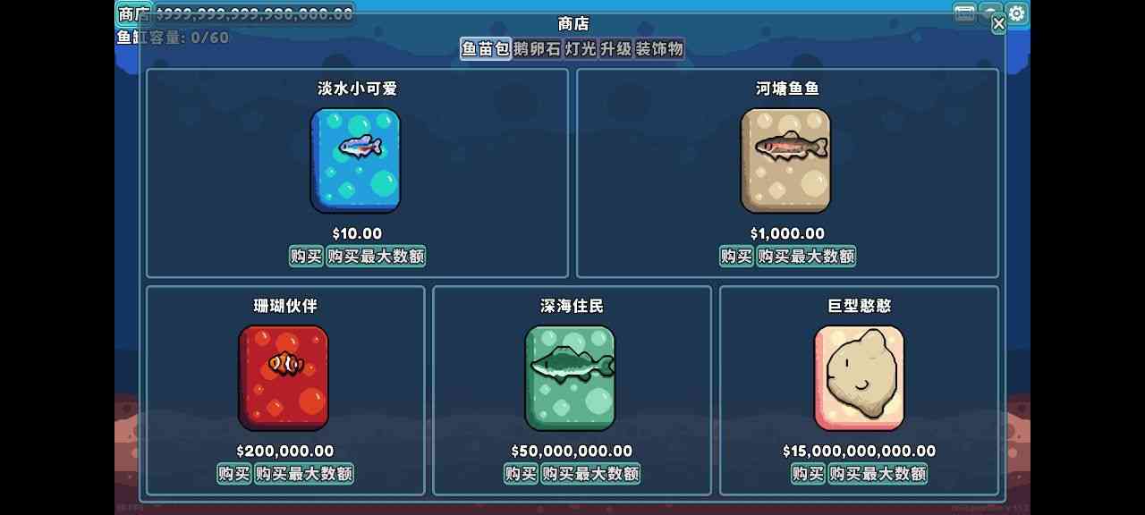 就这? 轻松水族馆,一款从电脑端移植到手机平台的养鱼游戏,以其独特的魅力吸引了无数玩家。在这里 你将遇见各种形态各异的鱼类,体验从鱼苗到成鱼的全过程,更有机会邂逅珍稀的海洋生物,收集齐全的鱼类图鉴,成就感油只是生。而今天 我们要为大家带来的是这款游戏的破解版——轻松水族馆无限金币v1.1.5最新版,让你畅享无限金币的乐趣,快来加入我们吧!