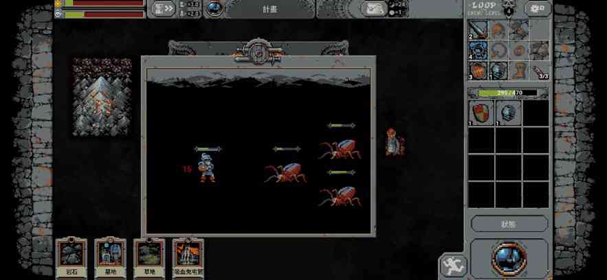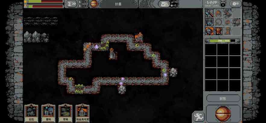 地块的布置,装备的更换,这种玩法听起来更像是普通的挂机类放置游戏。但与之不同的是在循环英雄中,放置的地块并不只是能收获资源的地方,更是会召唤引来怪物的场地。玩家成为了给主角制造麻烦的“上帝”, 但是初衷是好的,我们要对角色的能力进行判断,并对他进行适当的试炼,让他能够在不断的战斗中地提升实力。