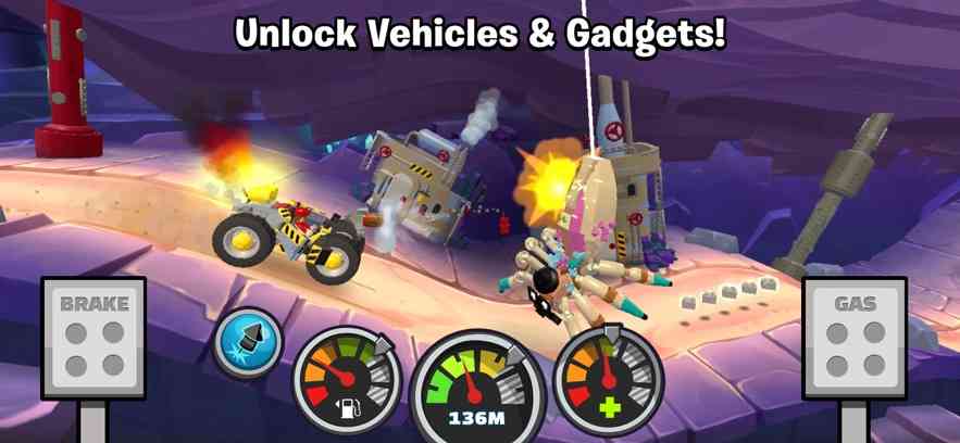 - 收集散布在各个关卡中的硬币和砖块,以永久增强车辆的动力!