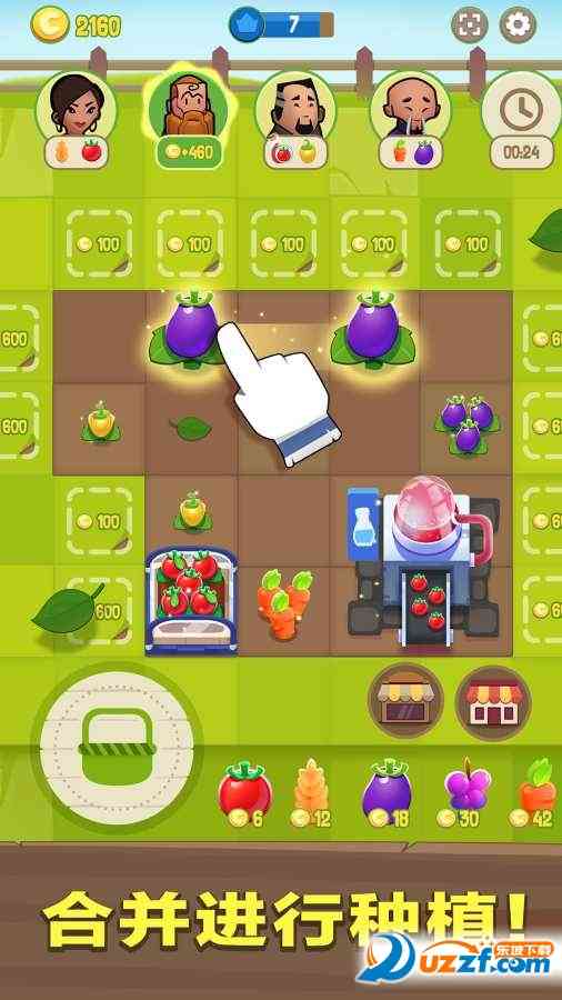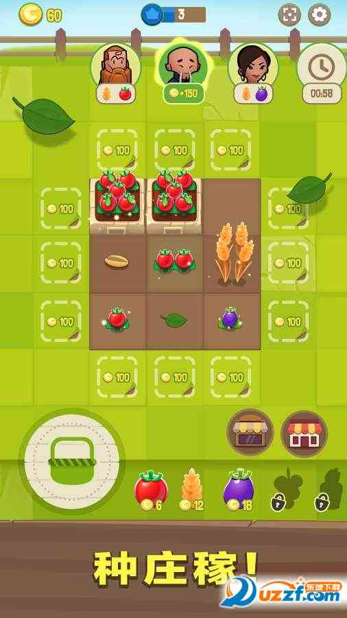 在田里适时种植各类农作物。将相似的农作物合并后种植,将其升级,以实现更大的收获。植物越大,结的果实就越多!不过技巧是:所有优秀的农场主都知道,需要花时间精心种植农作物才能获得大丰收。 从头再来。 你可以随时收获,但请务必关注屏幕顶部的订单 — 要赚钱和购买更多农作物,你需要填写订单。等到时机成熟,应用合并战略,以充分利用你的收获。