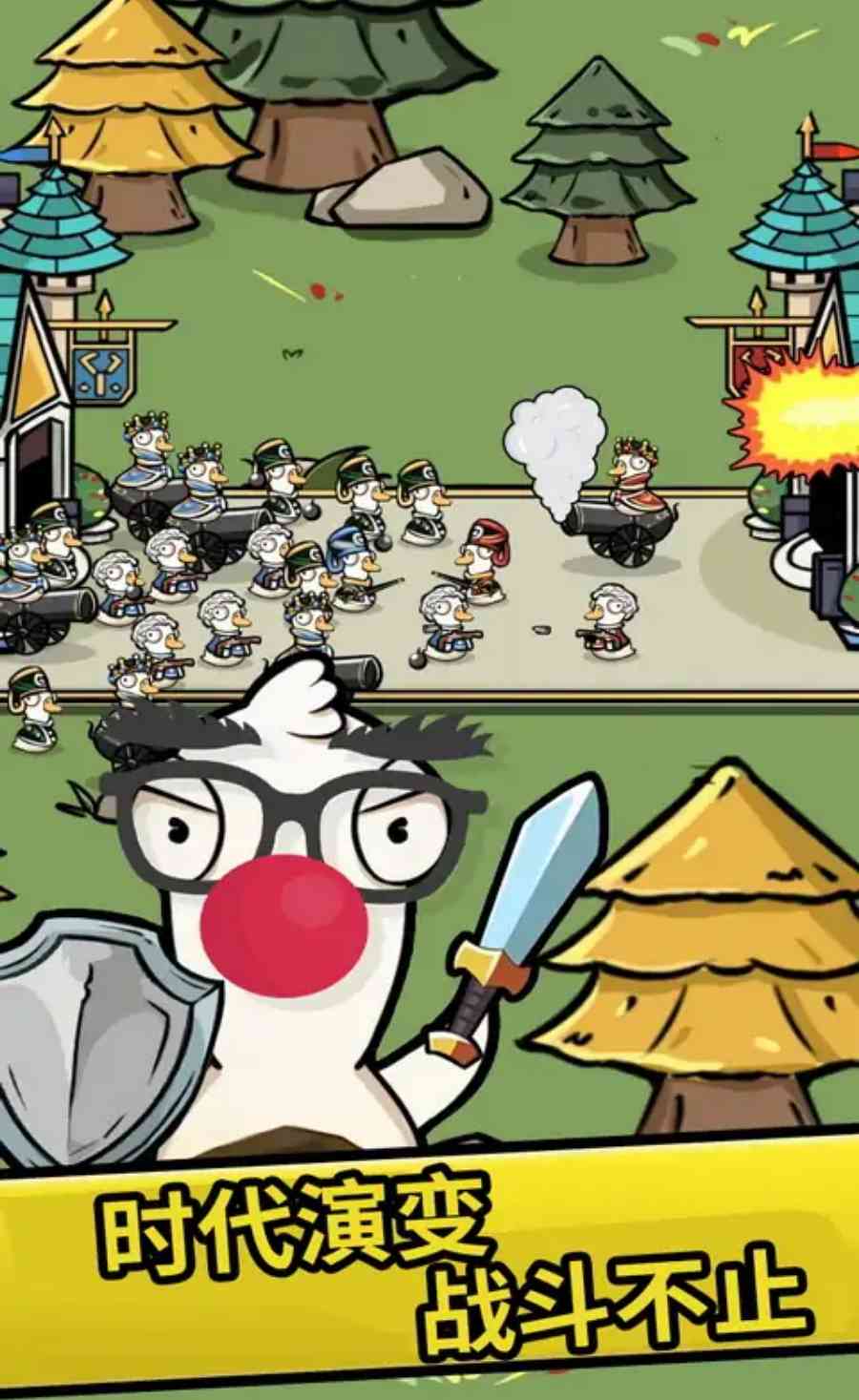-游戏中历经古埃及、 中世纪、未来等多个时代,每个时代都有独特的鹅鸭战士等待解锁,装扮和武装。从弓箭手到机械化战士,各具特色,等待着您的指挥,勇敢一点...!