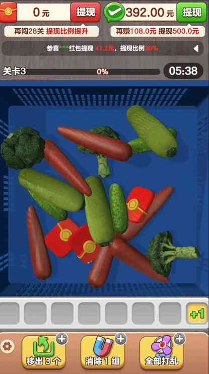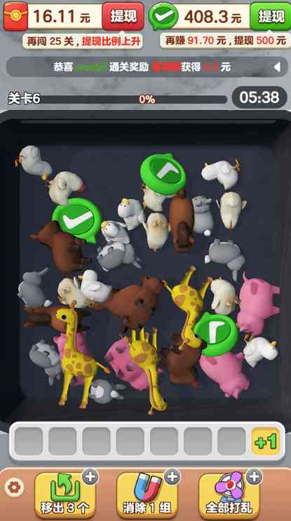 抓了个鹅作为一个双奖励的三消游戏, 有一种奖励是靠闯关获取的,我们去玩两关即可。三个道具每一关可以获取7次靠本事肯定是玩不过的,只能靠道具消了。注册就能领取多多福利, 各种道具使用,消除赢得多多胜利;每过一关,先提0.3元,后续如果还有时间玩的可以再兑换一两个红包,不夸张地说...。