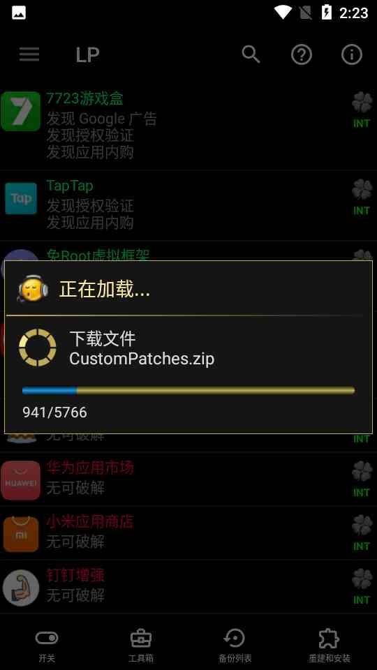 目标应用必须具有开发者签名,并且未被他人修改过。为使破解生效, 您需要在第一次打开目标应用时确保Google Play商店中登入了有效的账户,并已开启网络连接。每次破解时请先尝试使用“自动模式”移除授权验证。若无效,尝试使用“其他模式”。若此项破解导致应用出错,您可以尝试仅选择“选择破解模式”中的一些模板,弯道超车。。