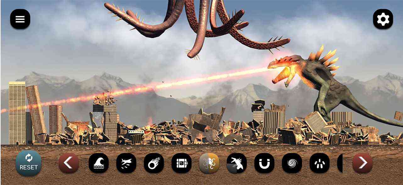 3、 你可以利用不同的方法来毁灭,粉碎城市,这里提供了多种玩法和方式,点击你喜欢的来测试城市的后来啊,归根结底。。