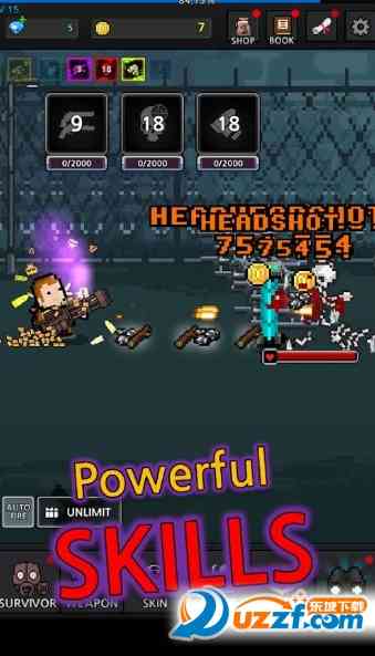 游戏中, 你将面临各种强大的枪械武器,使用它们击杀僵尸后你可以获取更多的武器,到头来成为僵尸世界的救世主。