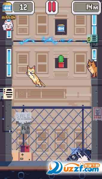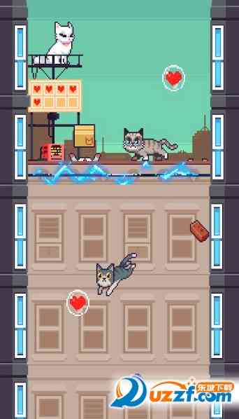 1、 使用一键式游戏操纵猫,爬上左边和右边的墙壁和登顶;