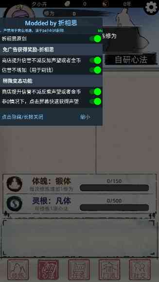 盘它。 这是一款很火的手机模拟休闲游戏, 和一般的仙侠游戏不一样的是这一类修仙模拟器更多的是挂机以及点点点还有模拟养成的功能,所以相对来说是比较适合养成系的,不是战斗系的,你喜欢的也可以试试哦,已经去除了广告了。