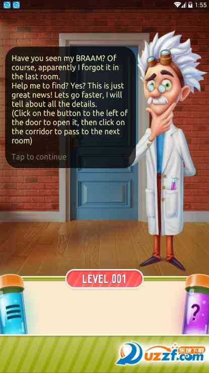 帮助奇怪的老头找到他的BRAAM, 点击门的左侧开门,点击走廊穿过到达下一个房间。