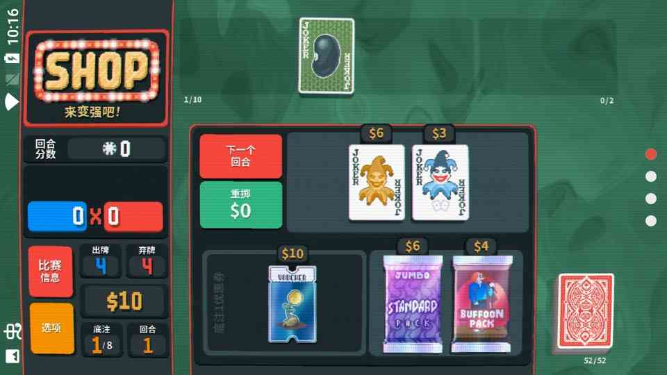 栓Q! 灵活运用一系列强大的工具:不同的牌组、 小丑牌、塔罗牌、星球牌、幽灵牌和代金券。利用这些多面手工具,点燃连击狂潮,为你的扑克手牌制造出让人兴奋、肾上腺素飙升的增效。
