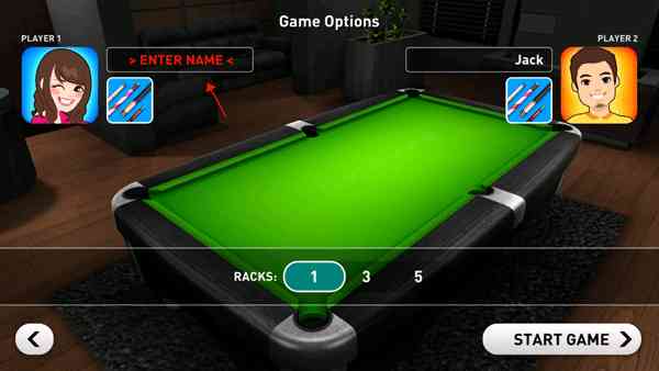 单人挑战/生涯模式:与AI电脑进行一系列逐渐升难度的比赛,解锁新的球杆和球桌。