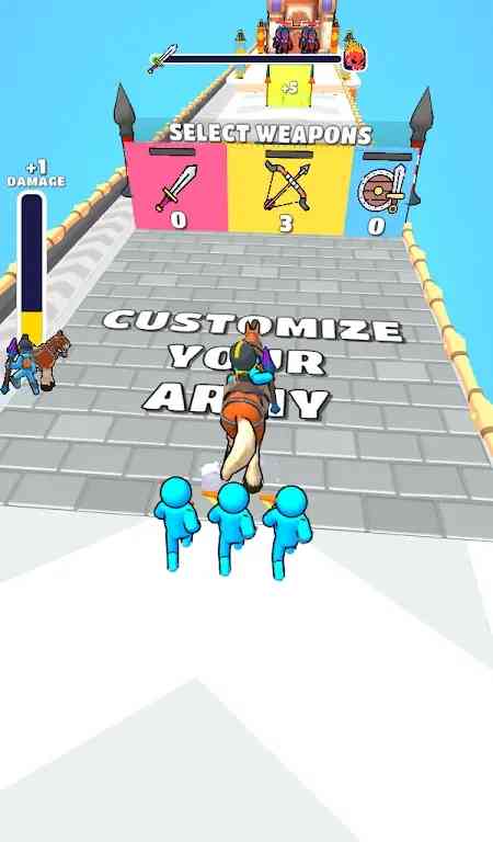 试试水。 自定义你的军队是一款休闲娱乐游戏, 目标位于游戏中的路径上,这些目标将帮助您聚集部队来建立您的军队,向“进化”目标开火将升级你的士兵,点击“计数”按钮将帮助你收集更多部队。当您沿着路径向目标开火时进入酒吧的碎片将帮助您的玩家进步并升级您的骑兵。