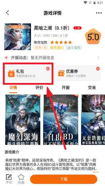 我怀疑... 2、 点击游戏进入游戏详情界面如下图所示,我们就能直接领取游戏礼包啦,还有优惠券可以领取。