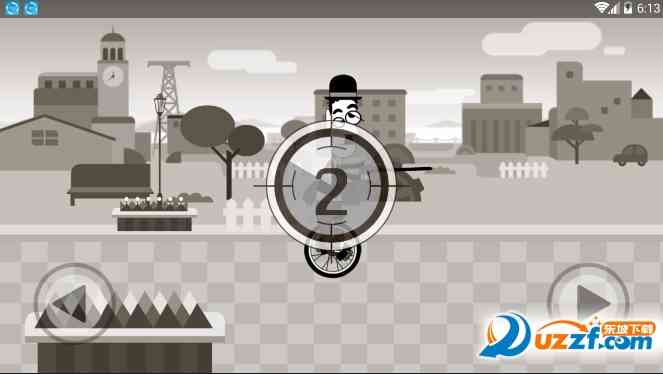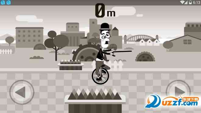 在《Monocycle Joy》中, 玩家将扮演查理·卓别林,骑上独轮车在黑白电影般的场景中穿梭。游戏操作简单,只需通过屏幕上左右两键控制角色前倾、后仰来保持平衡。