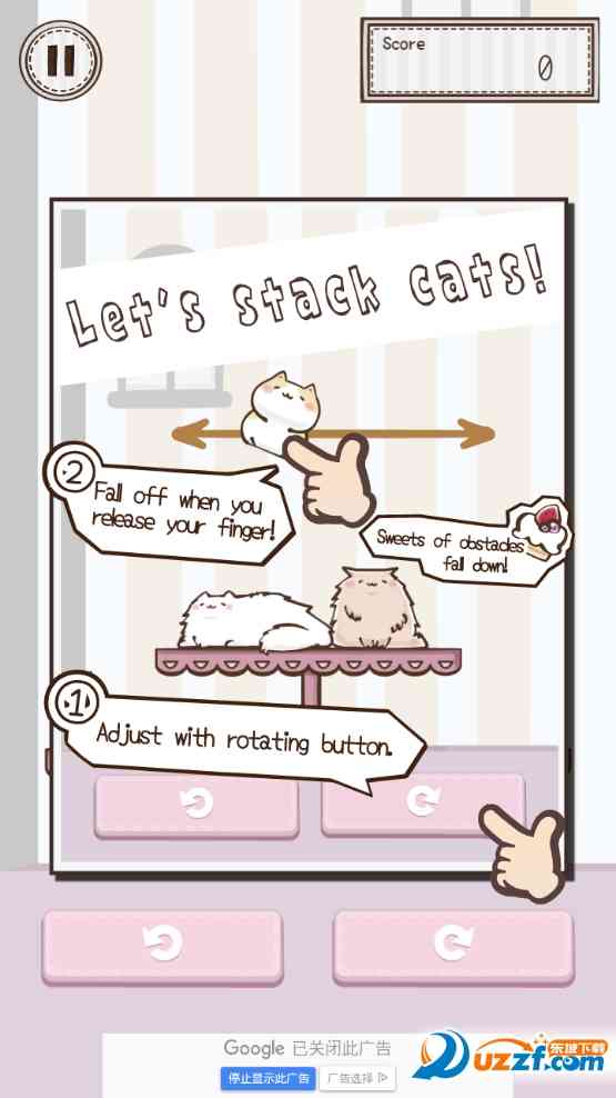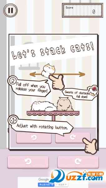 点击小猫咪控制它,放开猫咪使其下落,调整位置稳固成塔。