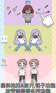 不错。 4、 进到页面先点击下方的已经搭配好的女鹅将她放到屏幕上, 点击下方的女孩可以添加多个角色到屏幕中。长按可拖动角色,往下滑至垃圾桶按钮可删除角色。返回主界面的话只需点击右方第三个按钮。