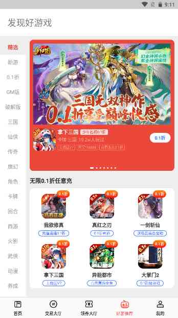 折扣号手游APP是一款许多玩家推荐的游戏盒子, 呈现了热门玩法、账号交易、特惠充值等许多的功能,让我们可以放心体验哦,直接在线查看,掌握丰富游戏玩法,了解对应的操作,乐趣真的多。