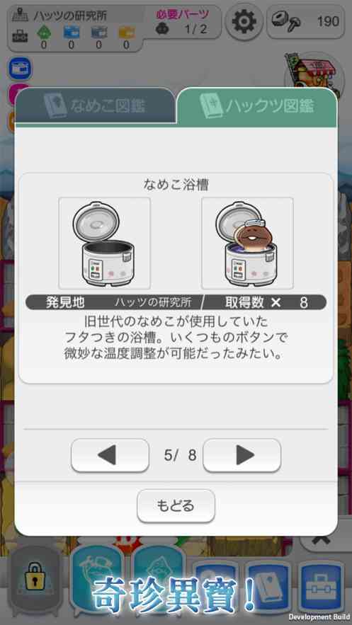 1、花园 在花园里我们可以种植菇菇,下方的物品栏为菇菇食物,菇菇食物右下方为所需的生长时间,左下方的数值越大则表示菇菇的品质越高。当菇菇长成之后 我们只要用手指滑过菇菇就可以收成,所获得的菇菇都会被换成NP,小伙伴们之后不管是购买菇菇食物还是在实验室升级设备都要用到NP。再说一个,用于培植菇菇的原木会被细菌侵袭, 我破防了。 我们必须连续点击细菌来消灭他们! 2、 图鉴 在图鉴中我们可以看到我们目前为止收集到的所有菇菇,点击菇菇图鉴可以看到菇菇的详细档案,我们的到头来目标就是集齐图鉴! 3、 实验室 在实验室里我们可以购买到栽培菇菇所需的设备或者是道具,有时我们必须收集到指定的菇菇图鉴,才能购买新设备。