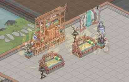 宅子内的布置也可以根据大家的喜好自行调整, 各种古风家具:屏风、秋千,甚至山河图,都给你安排上了亲手打造前厅、侧屋、主屋还有阁楼!