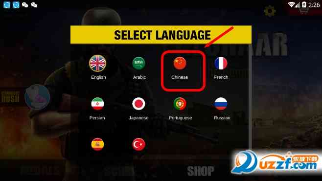 游戏开始前, 系统会有多个语言供玩家选择,玩家选择“chinese”就可以切换成中文。