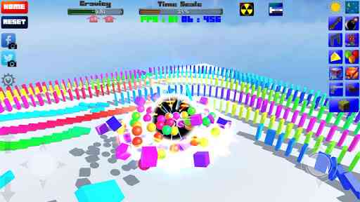 在这个游戏中, 你可以创建一个立方体和球,它们可以组合成各种有趣的形状。你可以和美丽的烟花!和Domino!和冷炮! AK-47,MP5,UZI,M90,剑,坦克....一起玩耍!当您选择了炸弹或导弹,只需引爆触摸位置,即可引发一场狂欢!