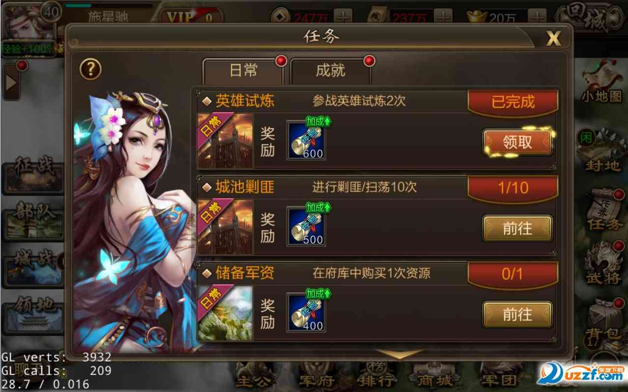通关城池关卡,不仅可获得丰厚的资源奖励,还能获得大量经验值,而且城池关卡的难度普遍较低,只要到达了开启等级,基本就能很容易通关。