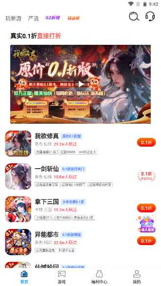 嗨折玩手游是一款游戏资源相当丰富的游戏盒子, 在这里大家能玩到各种类型的福利、折扣、bt手游,每款游戏还有对应的游戏礼包可以领取,帮助玩家直接跳过新手阶段,秒变游戏大神,除此之外嗨折玩手游盒子还为大家推出了多款0.1折手游,感兴趣的朋友们快来下载吧,这东西...!