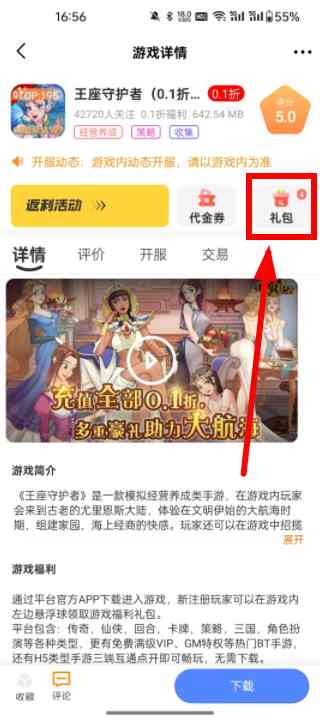 2、 找到后点击进入游戏详情界面如下图所示,即可领取游戏礼包。
