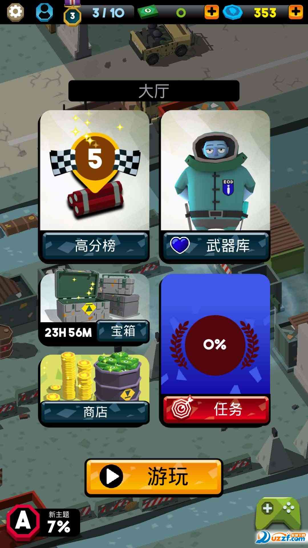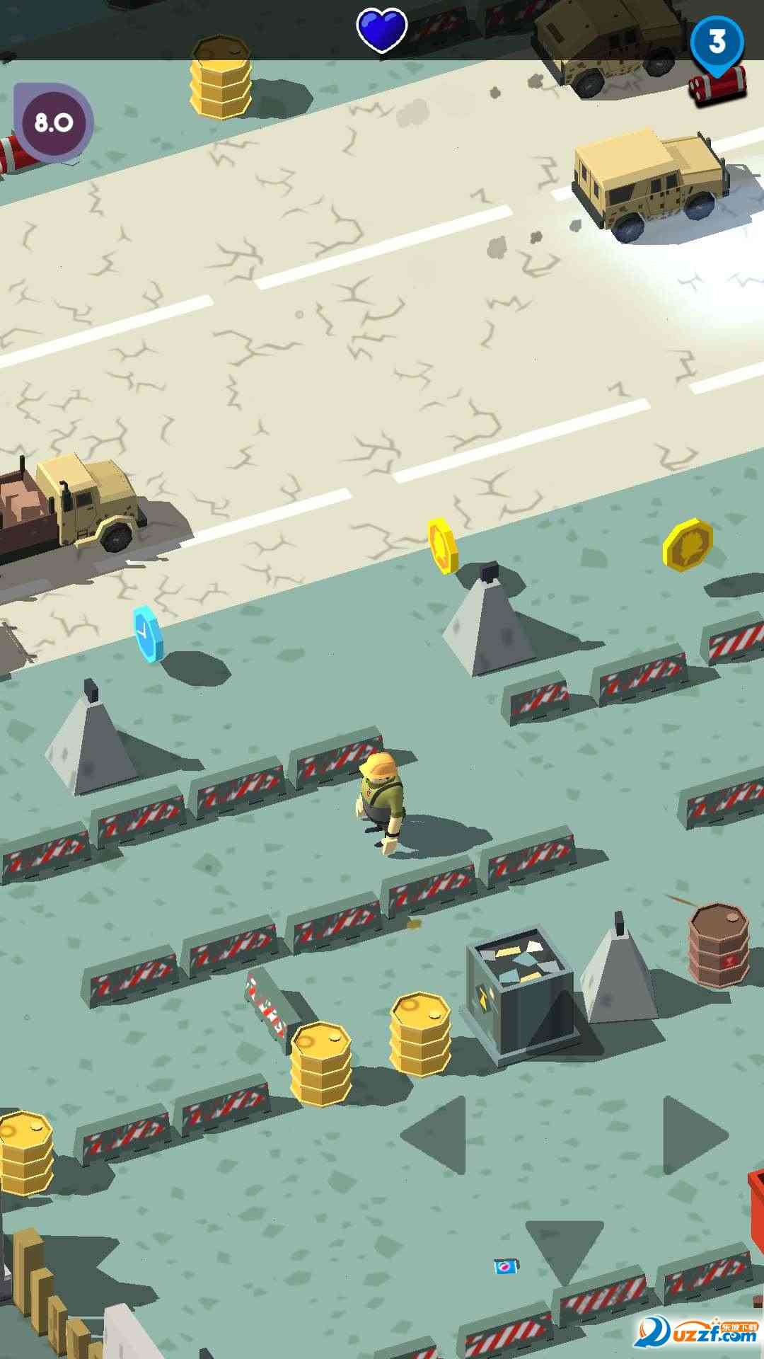 被割韭菜了。 模拟拆弹的策略游戏, 图中都是错综复杂的道路,想迷宫一样,跑起来有点费劲,不过游戏中会指示炸弹的方位以爆炸时间,道路上也有阻拦前进的路况与道具,当然也怎么加时间的与金币,玩家要合理安排时间,确保每个炸弹都要平安拆除,当然多余时间也可以多捡点金币,可以升级物品跟购买道具。