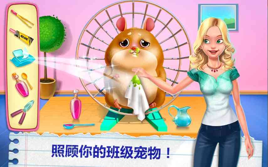 和最毛茸茸的校园宠物一起玩,并照顾它们!仓鼠、小兔子、海龟等等!