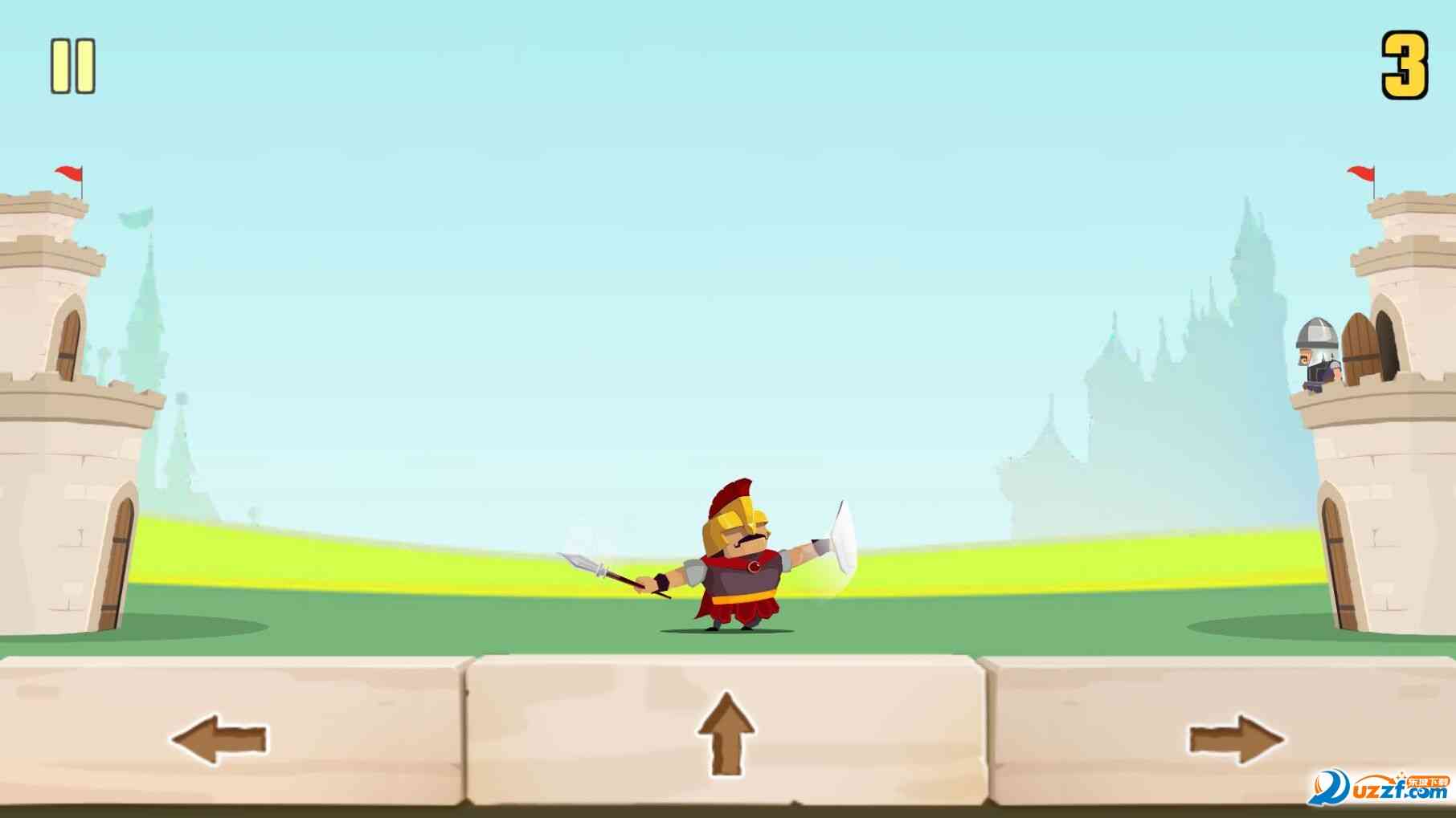 实锤。 一名战士手游是一款画风很q萌的休闲动作游戏, 你将操作这名斯巴达勇士去与旁边城楼上的部队进行对战,你只有一个人,需要躲避他们的射箭,可以使用盾牌来反击,躲避的敌人越多,奖励越多。