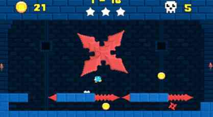 游戏采用纯粹的复古像素画风,整体色调偏暗,而出现的机关则是以红色更加突出显眼。屏幕的左右点击来控制人物的停止和跳跃,躲避尖刺、深坑、火球等陷阱。解锁新的角色,适合无聊的时光,让你在游戏中度过愉快的时光。