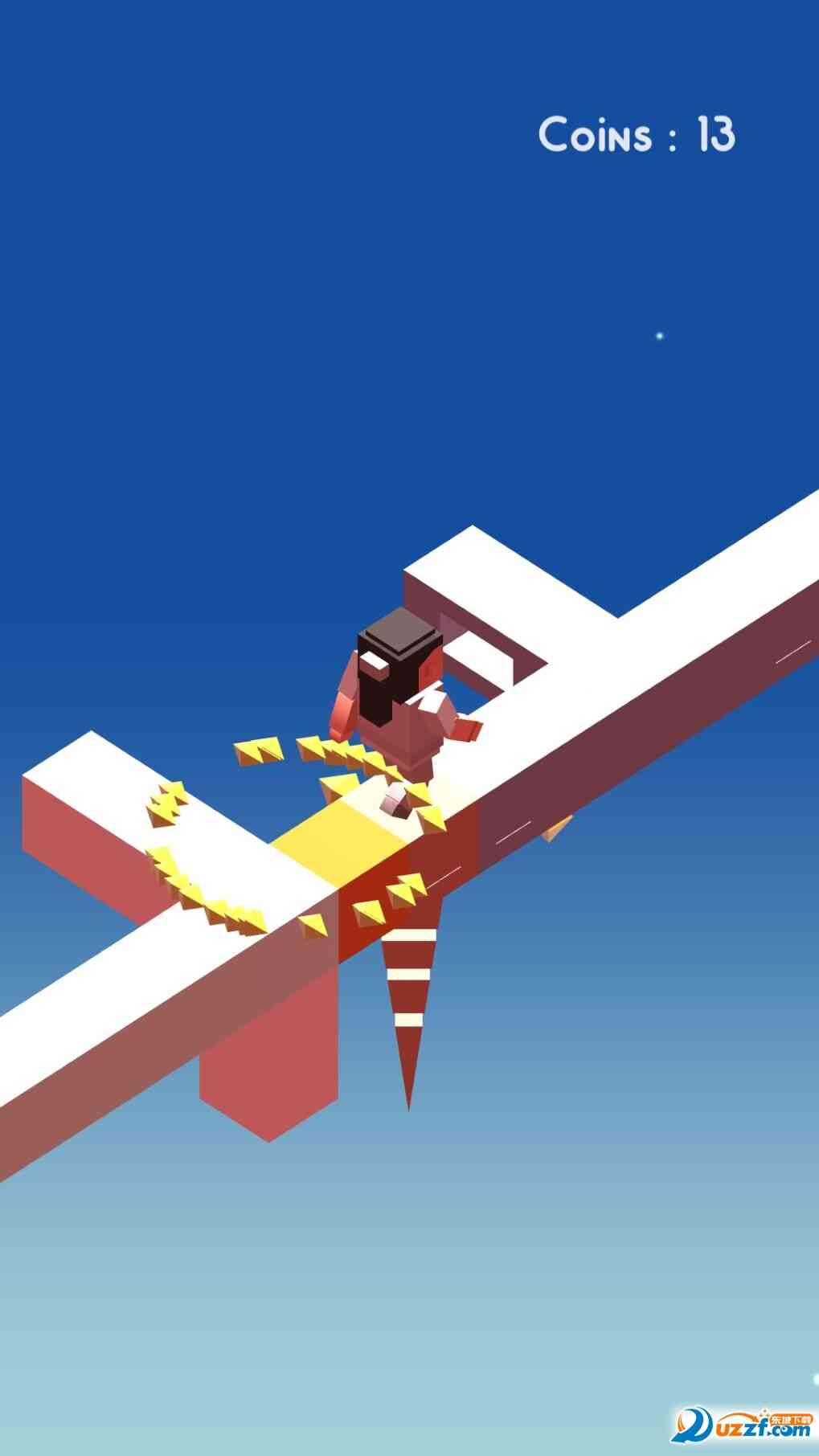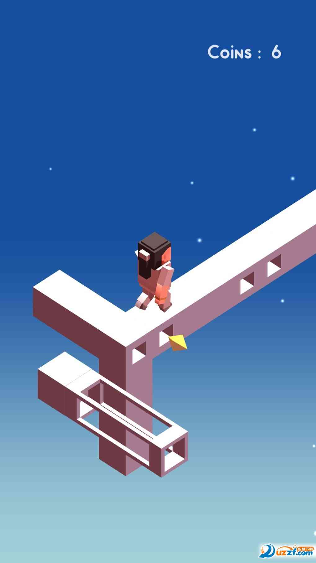 很有特色的玩法, 将跑酷的模式与翻转人物躲避障碍相结合,稍加不注意就很容易结束游戏。障碍物自由衍生阻挡像素人前进,而玩家只需要点击屏幕,找到没有障碍的一面就可以通过。这是一款很需要眼力与反应的游戏,看准前方道路上的障碍方向,提前做出应对就很重要了。游戏的画风与场景并不是很出色的制作,但看在玩法上,我可以给个两分。