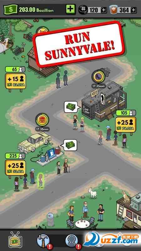 什么鬼? 管理和收集现金支付您的业务。收集酒水和卡片来升级拖车公园中的建筑物。懒得工作?当你不能玩的时候雇佣工人来经营你的企业。