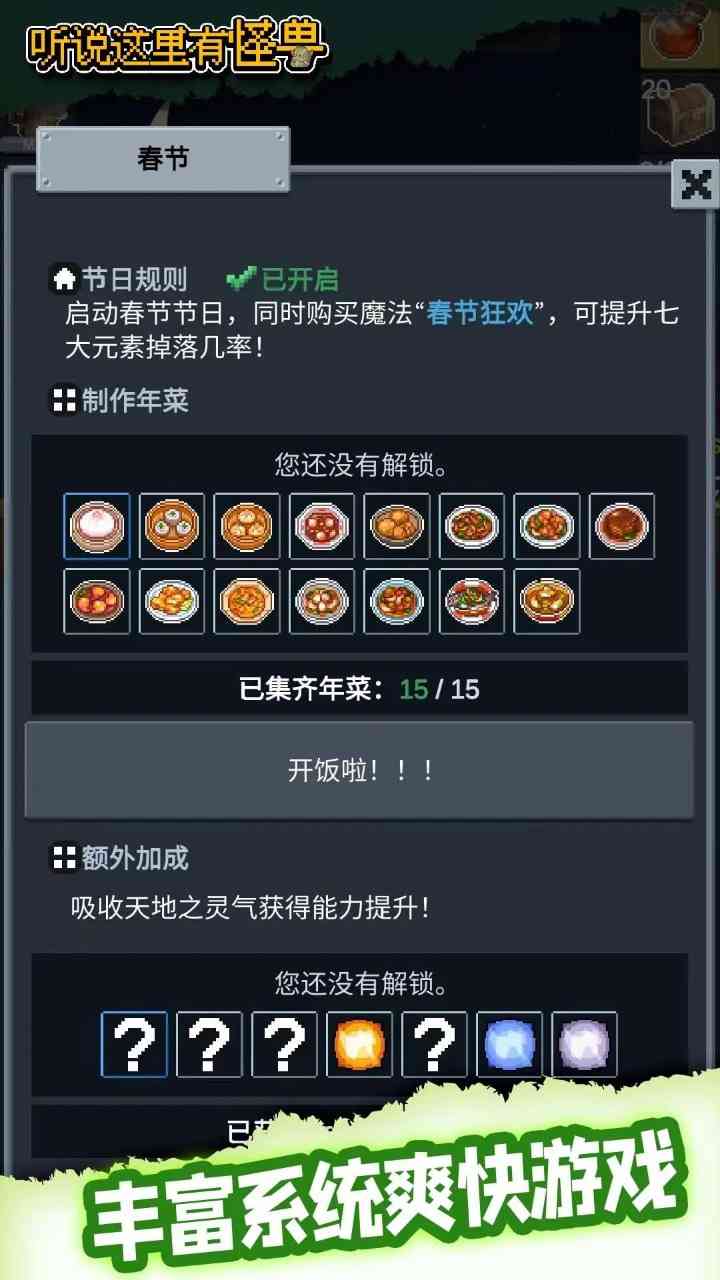 《听说这里有怪兽》是一款像素风格,放置挂机游戏。