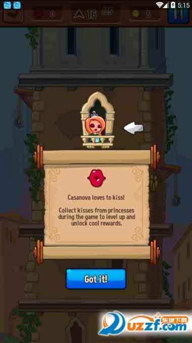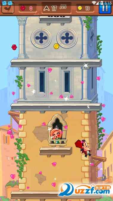 游戏的背景放置在浪漫的威尼斯,玩家需要帮助我们可爱的骑士,穿越阻碍和苦困难,不断的向上攀爬高塔,以至于获得公主的青睐,在这个过程中你可以收集更多的金币,购买道具以帮助你爬的更高,玩法简单,趣味性十足,