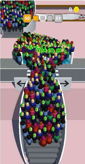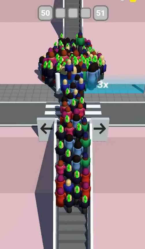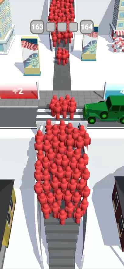 他破防了。 也所以呢需要玩家不仅选择好时间, 躲避来往的各种车辆,避免被车辆撞击而损失人数,一边还要选择适合自己的乘法器,选择高倍增益的辅助道具,将自己的人群进一步的放大,才能在关底获得更高的金币奖励。