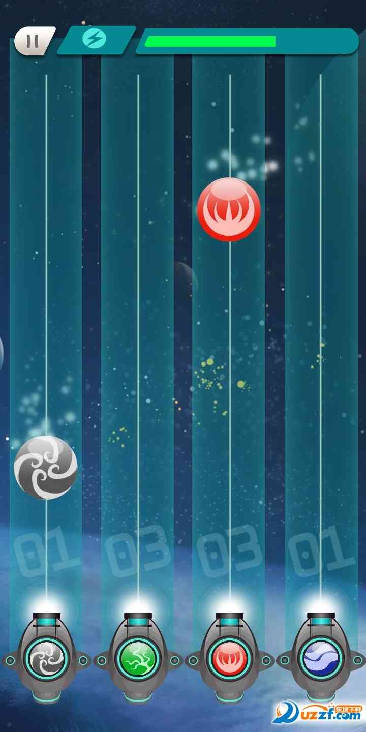 1、 在屏幕的下放有4个收集器,各个不同属性的星球从屏幕上方缓缓下落, 闹乌龙。 玩家需要做的就是把星球按照他们的属性移动到同属性的收集器上方;