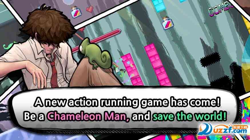 《变色龙人跑酷》是一款街机跑酷游戏,你从来没有见过!现在解开谜题颜色,骑节奏,并按照超级变色龙人!玩家将扮演一名和变色龙合体的人,开始全新的冒险,挑战各种机关和障碍,需要一定的操作性哦!别觉得加入一个变色设定不算啥, 真正开始玩游戏时很容易只想着跳跃而忘了换颜色,更别提练熟「落地瞬间变颜色会短暂加速」这样的技巧。