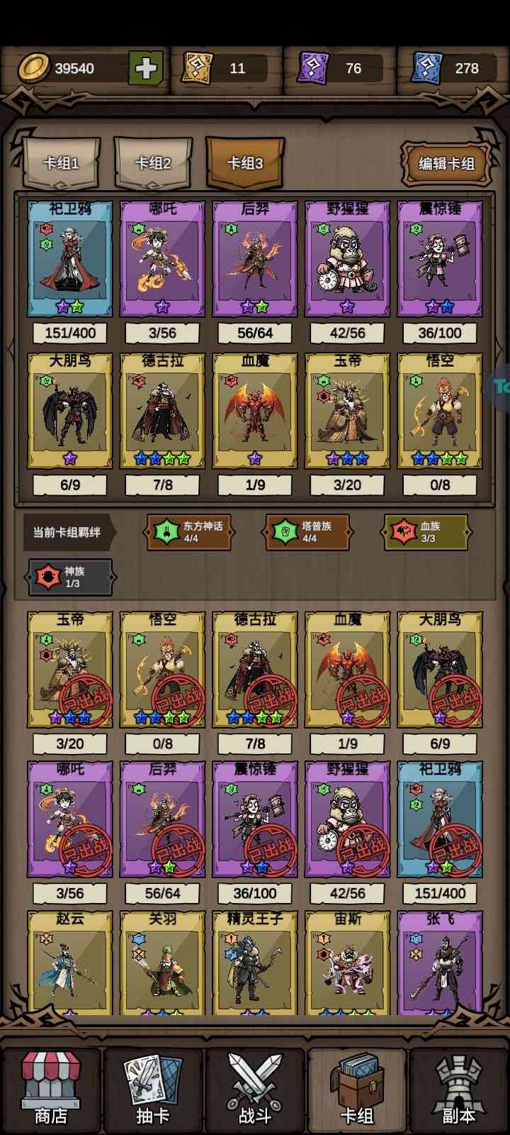 先开格子再上祭卫鸦,激活塔普羁绊再激活血族羁绊,然后再卖祭卫鸦赚银币升级卡, 心情复杂。 升级完前面的这些再去解锁东方升级开蛋。