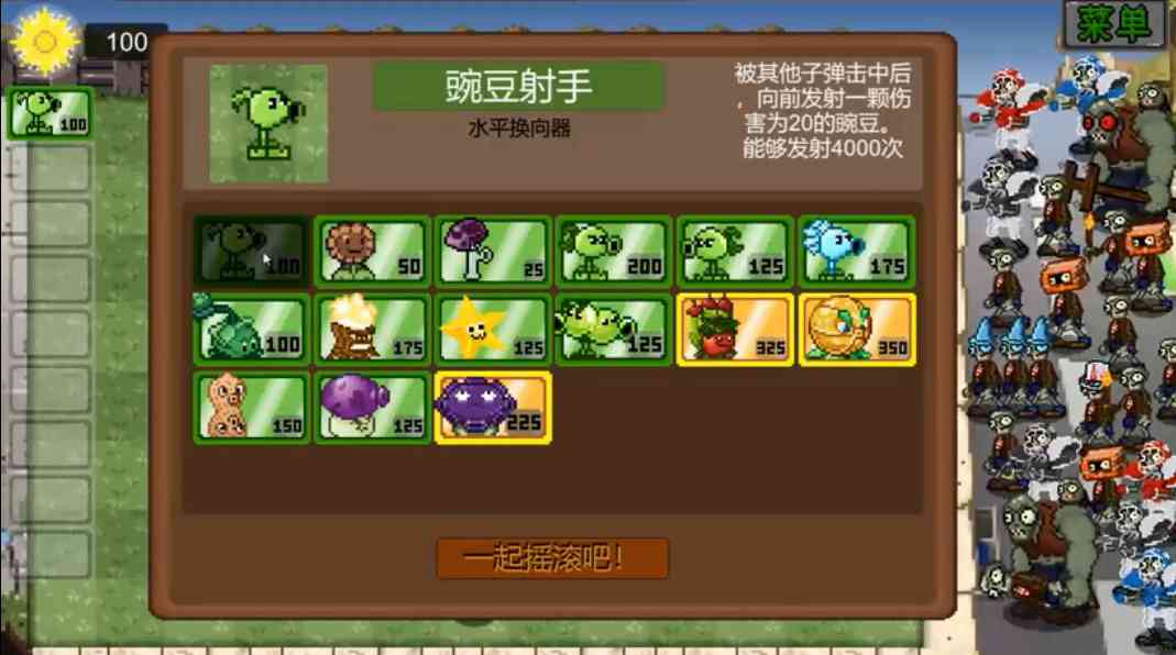 角色也很难出,改变方位就那么几个,加子弹伤害,子弹变成火焰,加子弹大小,子弹变成散弹,加个子弹充能玉米加农炮,都是玩剩下的东西,到再说说只会成公式,没平衡也没啥意思,视频看到的策略性和那几个植物只是主要原因是作者想给你看,往后再做做就是群魔乱舞
